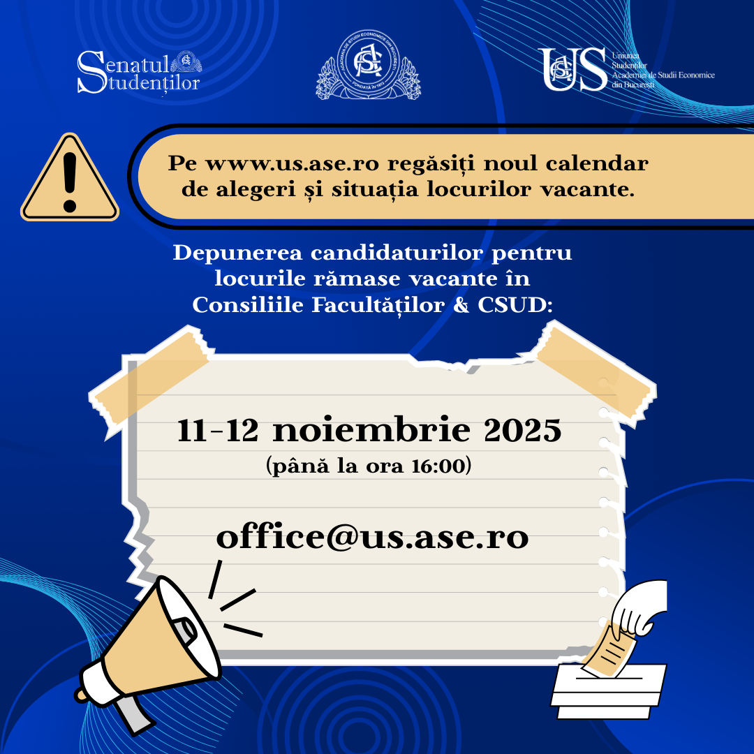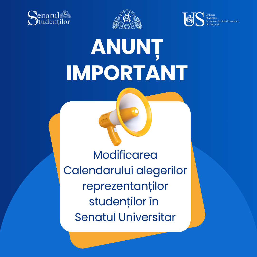 Dragi studenți și doctoranzi, ⚠️ NOUL Calendar al alegerilor reprezentanților studenților poate fi consultat aici. Vă